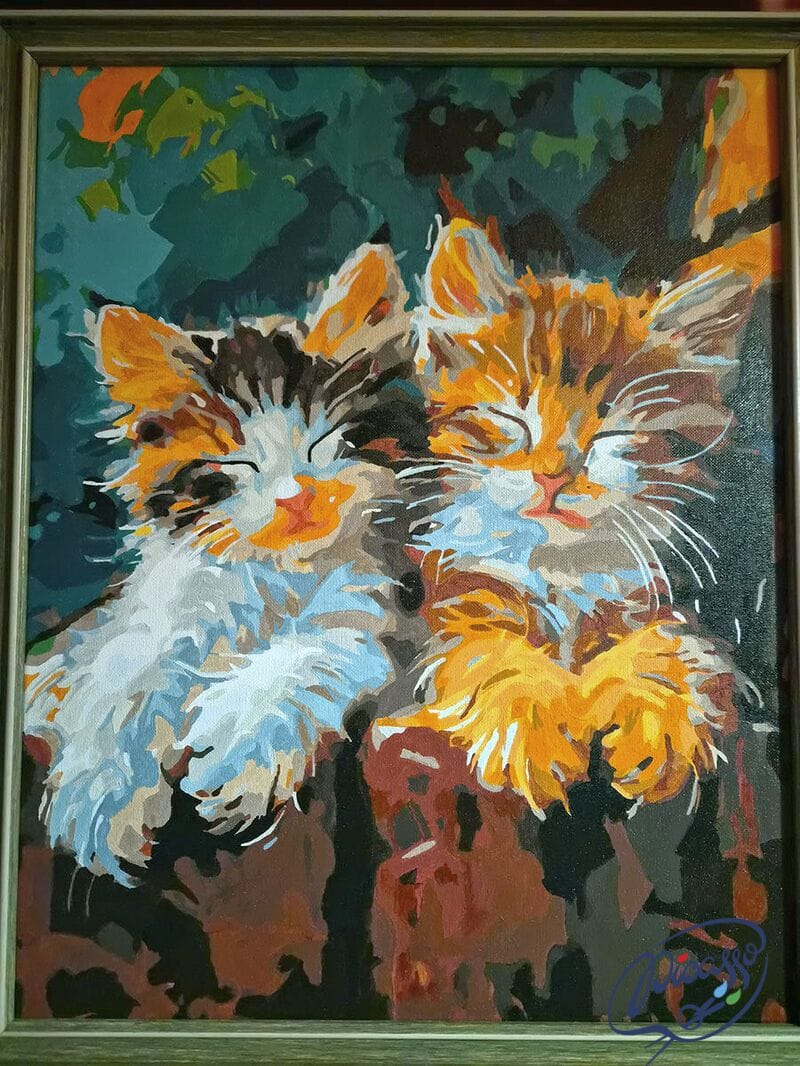 Patrząc na te dwa śpiące kotki, możemy poczuć spokój i odprężenie, jakbyśmy sami przenieśli się do tego spokojnego zakątka. Ich niewinność i zaufanie do otaczającego świata przypominają nam o bezpieczeństwie, jakie daje dom i bliskość z najbliższymi. "Drzemka" to celebracja prostoty, miłości i wspólnoty, które są esencją szczęśliwego życia.