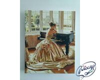 Przepiękna dziewczyna w balowej sukni siedzi przy fortepianie. Prosty, minimalistyczny wystrój pokoju ze starymi okiennicami, przez które widać letni ogród, dopełnia całej stylistyki. Co tam robi? Odpoczywa czy może przed czymś umyka? Szuka odrobiny wytchnienia czy załamuje ręce nad kolejnymi nutami, które wygrywała na fortepianie? Malowanie po numerach - Dziewczyna przy fortepianie to Twoja własna sztuka, którą możesz stworzyć i dopisać do niej własną fabułę związaną z ludźmi. Wyjątkowy klimat prezentowanego dzieła przedstawiony jest w statycznej formie - młoda, piękna dziewczyna w niezwykłej, balowej sukni siedzi przy czarnym fortepianie i opiera się o niego jakby ze zmęczenia, a może z rozmarzenia? Beżowe i brązowe barwy podkreślone czernią fortepianu i wypełnione w tle zielenią ogrodu przepięknie prezentują się na tym dziele. Kolorowanie po numerach - Dziewczyna przy fortepianie to możliwość odbycia przygody z tą tajemniczą niewiastą, by poznać jej utrapienia oraz marzenia.
