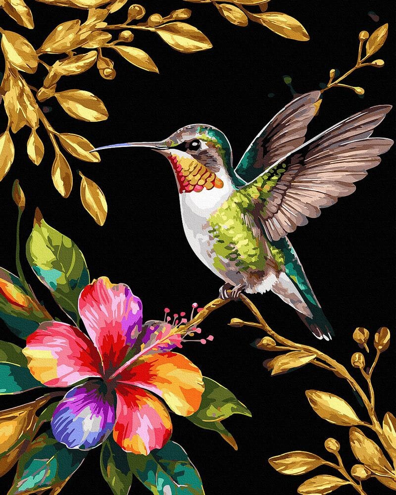 Koliber i złote akcenty 40x50 cm malowanie po numerach