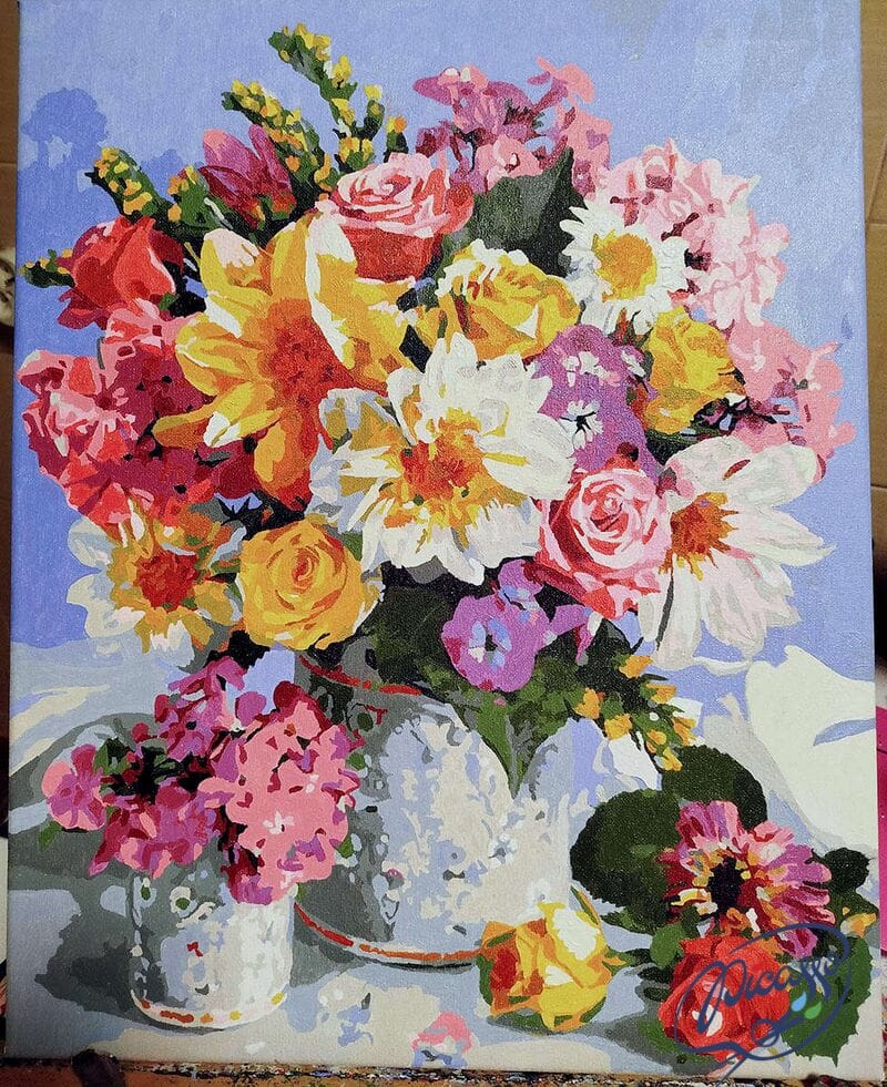 Samodzielne malowanie obrazów nigdy nie było łatwiejsze! Jeśli chcesz się poczuć jak prawdziwy artysta zamów zestaw do malowania po numerach. Na czym to polega? W zamówieniu otrzymasz wszystkie niezbędne akcesoria — nienaciągnięte na ramę płótno, farby, pędzle, arkusz kontrolny oraz instrukcję. Na płótnie wyznaczone są pola z numerkami. Twoim zadaniem jest ich zamalowanie odpowiednim kolorem. Gdy wypełnisz wszystkie ponumerowane pola, otrzymasz wyjątkowy obraz przedstawiający kolorowy letni bukiet.