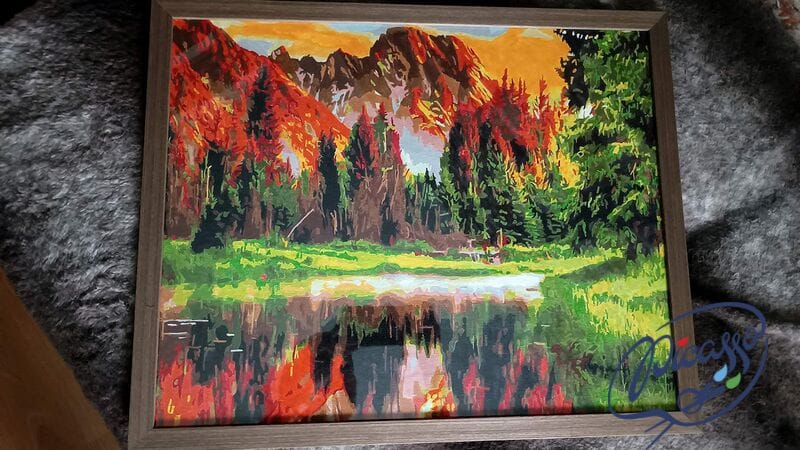 Samodzielne malowanie obrazów nigdy nie było łatwiejsze! Jeśli chcesz się poczuć jak prawdziwy artysta zamów zestaw do malowania po numerach. Na czym to polega? W zamówieniu otrzymasz wszystkie niezbędne akcesoria — nienaciągnięte na ramę płótno, farby, pędzle, arkusz kontrolny oraz instrukcję. Na płótnie wyznaczone są pola z numerkami. Twoim zadaniem jest ich zamalowanie odpowiednim kolorem. Gdy wypełnisz wszystkie ponumerowane pola, otrzymasz wyjątkowy obraz przedstawiający Krajobraz górski.