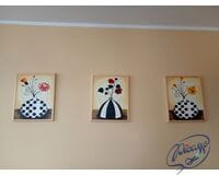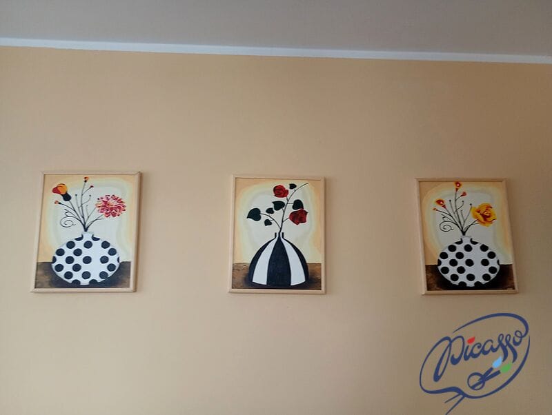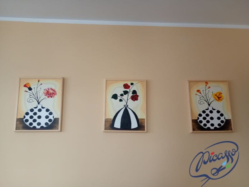 Samodzielne malowanie obrazów nigdy nie było łatwiejsze! Jeśli chcesz się poczuć jak prawdziwy artysta zamów zestaw do malowania po numerach. Na czym to polega? W zamówieniu otrzymasz wszystkie niezbędne akcesoria — płótno, farby, pędzle, arkusz kontrolny oraz instrukcję. Na płótnie wyznaczone są pola z numerkami. Twoim zadaniem jest ich zamalowanie odpowiednim kolorem. Gdy wypełnisz wszystkie ponumerowane pola, otrzymasz wyjątkowy obraz przedstawiający Kwiatki w wazonach.
