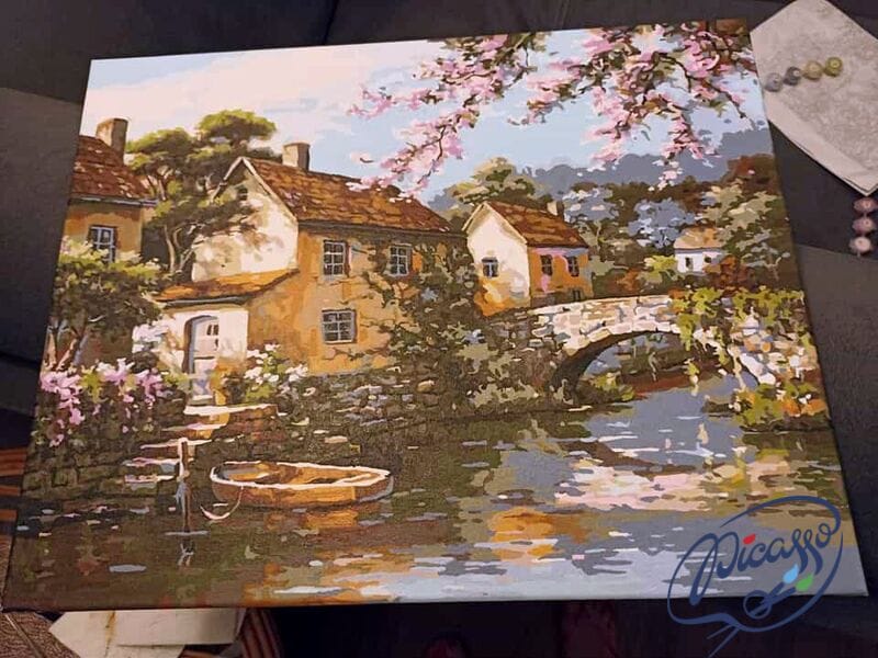 Daj się zabrać w fabularną podróż po miejskich krajobrazach bez wychodzenia z domu. Przepiękny obraz “Kwitnące molo” możesz wykonać samodzielnie bez konieczności posiadania talentu czy umiejętności posługiwania się farbami i pędzlami. Prezentuje on śliczną rzekę, nad którą biegnie kamienny mostek. Po drugiej stronie znajduje się kilka mieszkalnych budynków. Urokliwa sceneria udekorowana jest kwiatami i innymi roślinami. Kolorowanie po numerach - Kwitnące molo utrzymane jest w przyjemnie ciepłych odcieniach. Przedstawiamy malowanie po numerach - Kwitnące molo - kompleksowy zestaw, w którym znajdziesz wszystko, co niezbędne, aby ukończyć dzieło. Pozytywny wpływ malowania na samopoczucie pozwoli Ci się odprężyć i na moment oderwać od codziennego zgiełku. Na czym polega malowanie po numerach? To proste! Wystarczy postępować zgodnie z instrukcją i nakładać kolejne kolory farby na odpowiedni numer na przygotowanym arkuszu. I już! To ten rodzaj zabawy, na którą może pozwolić sobie każdy!