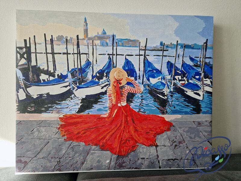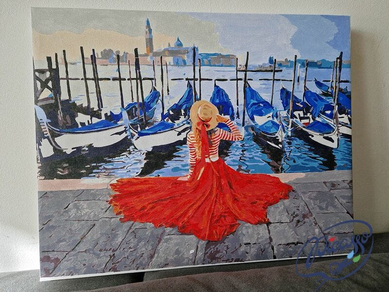 Samodzielne malowanie obrazów nigdy nie było łatwiejsze! Jeśli chcesz się poczuć jak prawdziwy artysta zamów zestaw do malowania po numerach. Na czym to polega? W zamówieniu otrzymasz wszystkie niezbędne akcesoria — nienaciągnięte na ramę płótno, farby, pędzle, arkusz kontrolny oraz instrukcję. Na płótnie wyznaczone są pola z numerkami. Twoim zadaniem jest ich zamalowanie odpowiednim kolorem. Gdy wypełnisz wszystkie ponumerowane pola, otrzymasz wyjątkowy obraz przedstawiający molo w Wenecji.