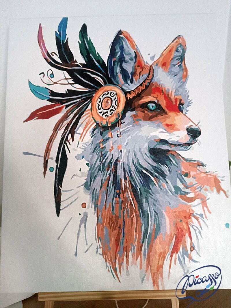 Skromna pięknotka to obraz skrywający w sobie wiele piękna, unikalnego stylu i oryginalnego wyrazu. Na prezentowanym płótnie przedstawiony jest niesamowitej urody lis, utrzymany w abstrakcyjnym stylu. Uwagę skupiają przenikliwe oczy zwierzęcia, w których znajduje się cała magia obrazu. Charakterystycznym dodatkiem, który wprowadza tajemniczy i unikatowy klimat do grafiki, jest indiańska ozdoba w formie pióropusza. Obraz do namalowania Skromna pięknotka to rewelacyjna propozycja dla osób, które potrafią dostrzec urok i wyjątkowość w każdym wydaniu.