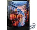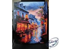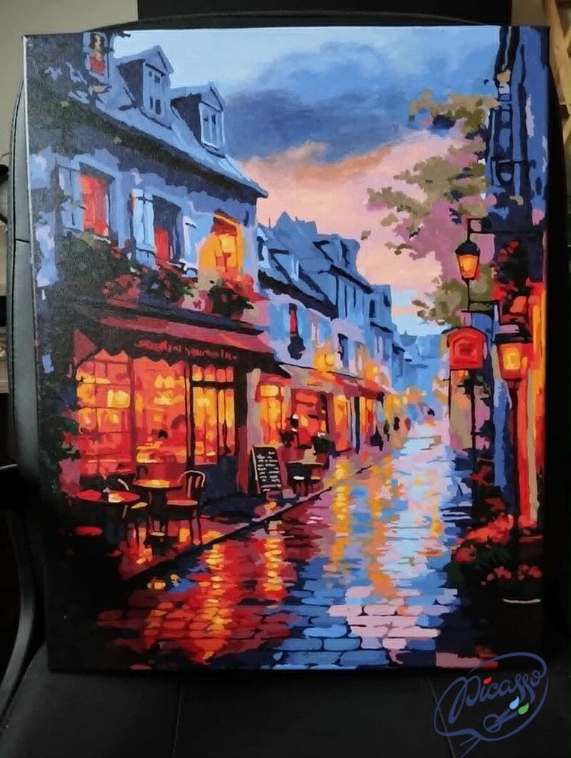 Szmery ulic i zapach kawy to obraz do malowania po numerach, który przenosi Cię w sam środek miasta o zmierzchu – wtedy, gdy wszystko zwalnia, a ulice nabierają magicznego blasku. W tle widać kawiarnie i restauracje z nastrojowymi ogródkami, rozświetlonymi ciepłym światłem lamp. Fioletowe niebo nad główną ulicą odbija się w brukowanych chodnikach, a całość wypełnia atmosfera rozmów, zapachów i ciepła miejskiego życia.