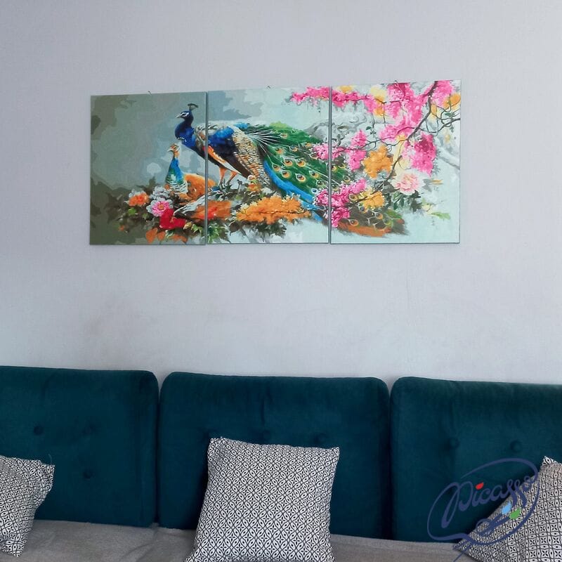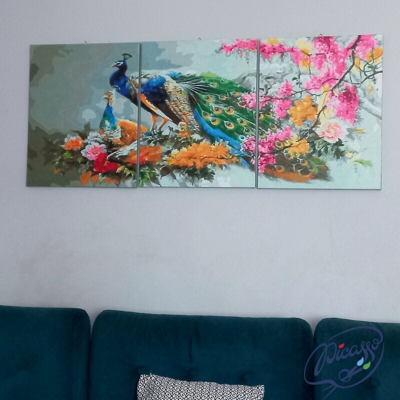Samodzielne malowanie obrazów nigdy nie było łatwiejsze! Jeśli chcesz się poczuć jak prawdziwy artysta zamów zestaw do malowania po numerach. Na czym to polega? W zamówieniu otrzymasz wszystkie niezbędne akcesoria — płótno, farby, pędzle, arkusz kontrolny oraz instrukcję. Na płótnie wyznaczone są pola z numerkami. Twoim zadaniem jest ich zamalowanie odpowiednim kolorem. Gdy wypełnisz wszystkie ponumerowane pola, otrzymasz wyjątkowy obraz przedstawiający Wielobarwna pawią rodzinę.