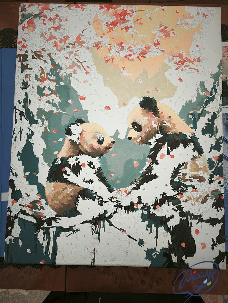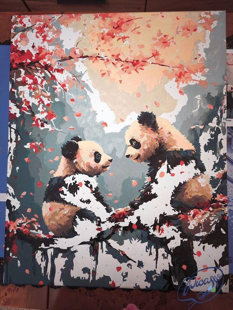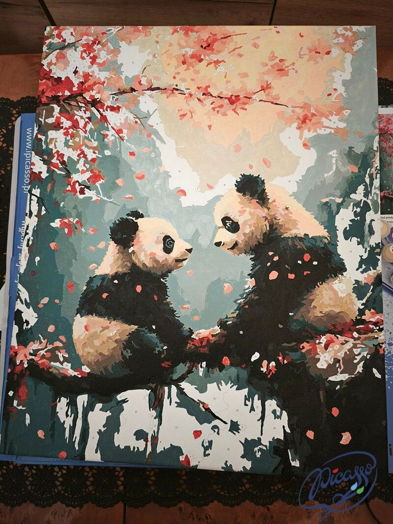 Zatrzymane w równowadze to obraz do malowania po numerach, który w niezwykle uroczy sposób ukazuje spokój, harmonię i prostotę chwil, które często nam umykają. Przedstawia dwie pandy siedzące naprzeciwko siebie na gałęzi drzewa, otulone koroną kwitnącej wiśni. Scena wydaje się zawieszona między ruchem a bezruchem, jakby czas na moment się zatrzymał, by uchwycić idealną równowagę między naturą, czułością i obecnością.